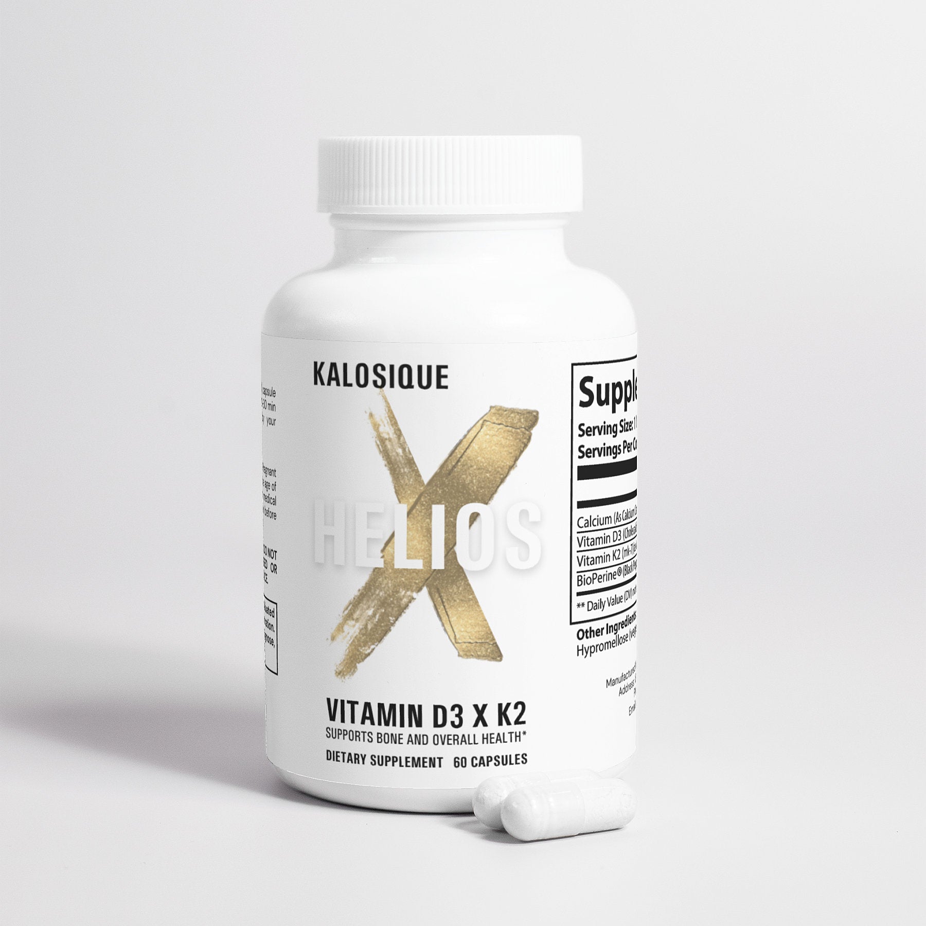 HELIOS X combines high-potency Vitamin D3 (5,000 IU) with Vitamin K2 (MK-7), Calcium, and BioPerine® to support daily wellness and optimized nutrient synergy — all in one clean, powerful formula.